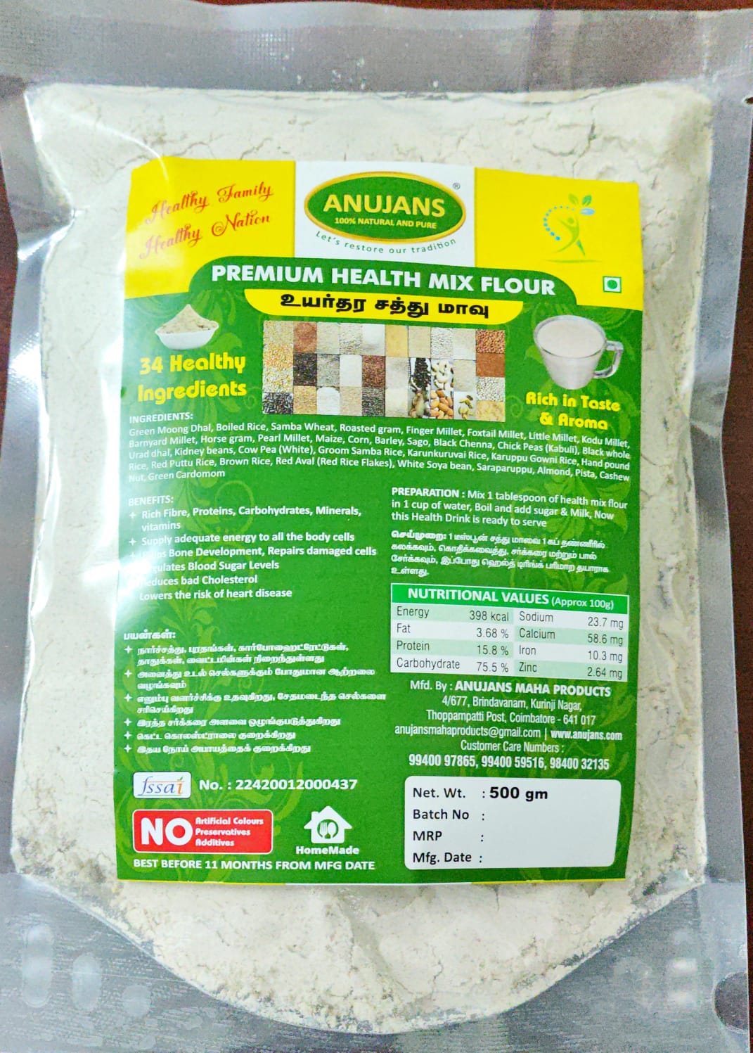 - Digestive Support: High in dietary fiber from various millets, legumes, and grains, it helps promote healthy digestion and maintain satiety.